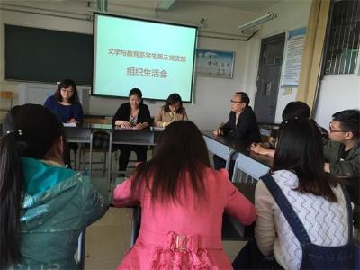 4月23日中午,文学与教育系学生第三党支部在教学楼B318教室召开以“发挥模范作用,创设优良学风”为主题的组织生活会。学生第三支部全体党员参加,系党总支书记蔡友和同志出席并指导会议。